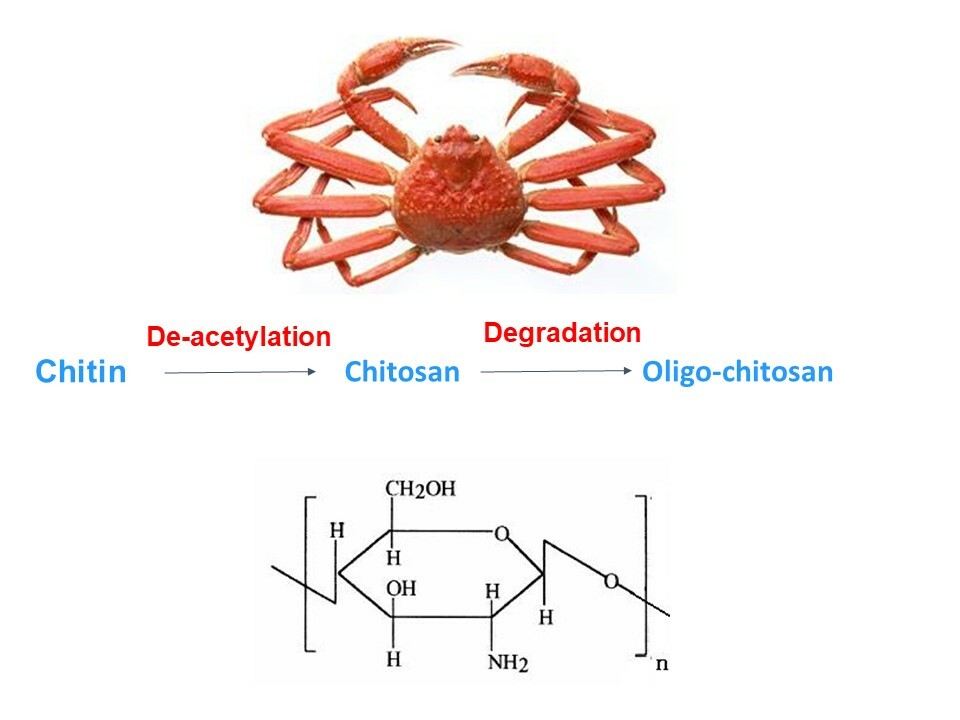 Chitosan is a natural, safe, and cost-effective biopolymer derived from amino-deoxy-D-glucose, produced through the de-acetylation of chitin. Chitin is the primary component of the exoskeletons of arthropods, such as lobsters, shrimp, and crabs, as well as insects and fungi cell walls. It is the second largest renewable carbon source after lignocellulosic biomass. Due to its affordability, biodegradability, non-toxicity to the environment, and biocompatibility, chitosan is an ideal resource for sustainable agriculture, enhancing soil health, and boosting crop growth and yield. Additionally, it is increasingly utilized in cosmetics, food, animal feed, and medicine.